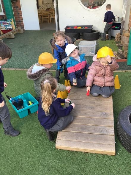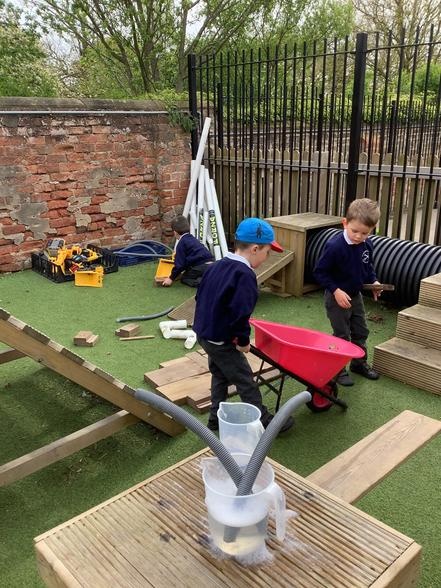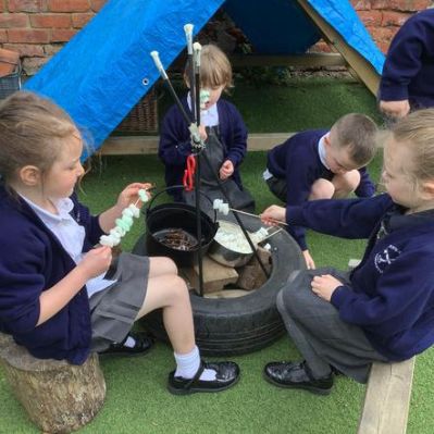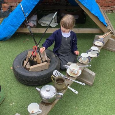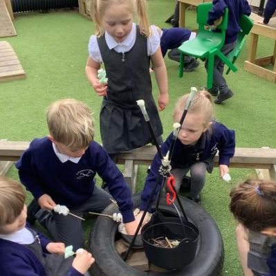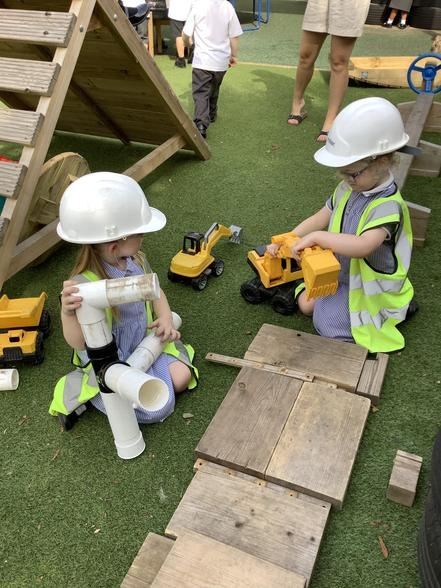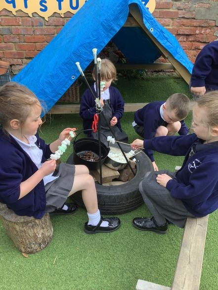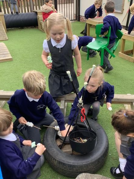 Over the last few weeks, the children have enjoyed outdoor small world, water play, construction and role play. Toasting pretend marshmallows on our "camp fire" was a definite highlight!