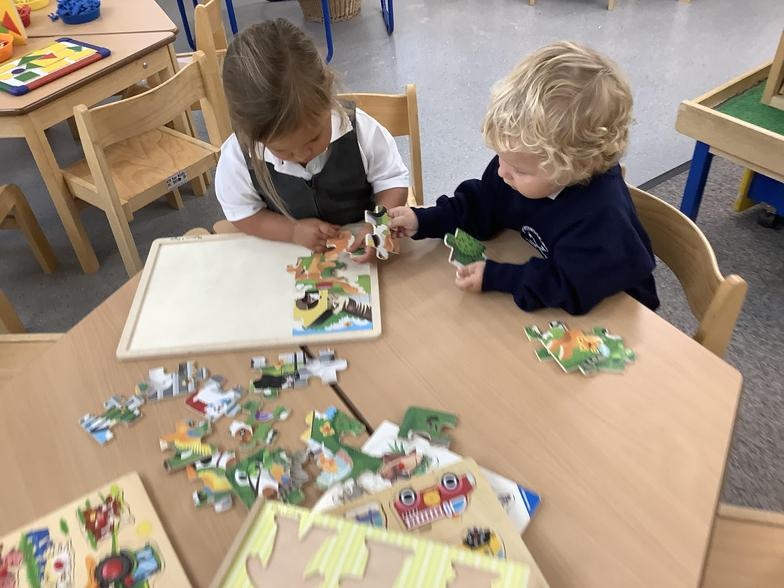 This week, we spotted some great paired play. Often, infant children play alone or alongside others and this in itself is a great skill. Group play is also common, especially outside or during role play. But, it is particularly nice to see children play collaboratively with a partner, especially one who might not normally be in their close circle of friends.