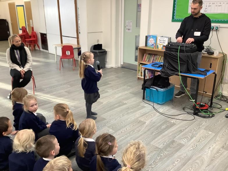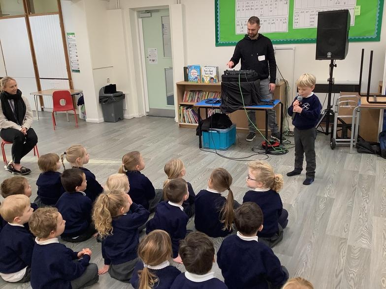 After a demonstration, we were shown how to make different sounds with our voices and put them together to make music. It was lots of fun!