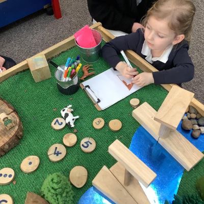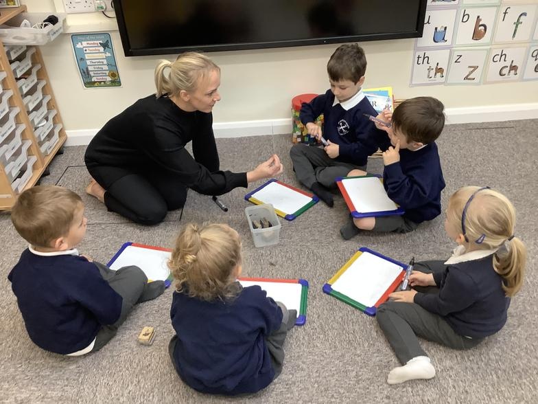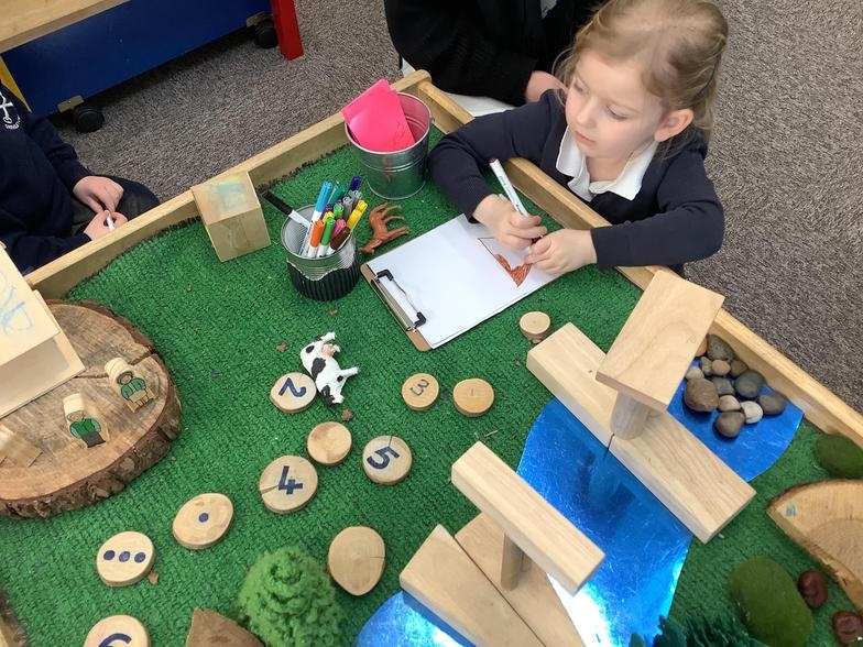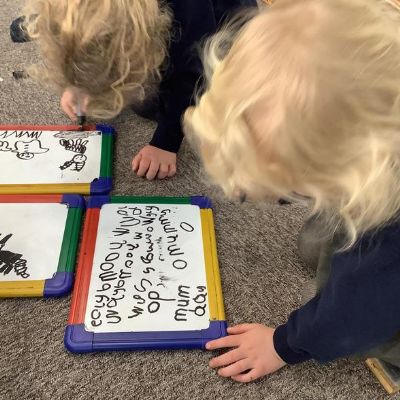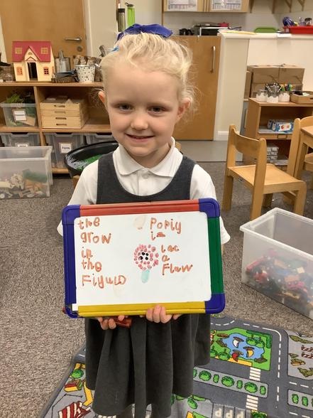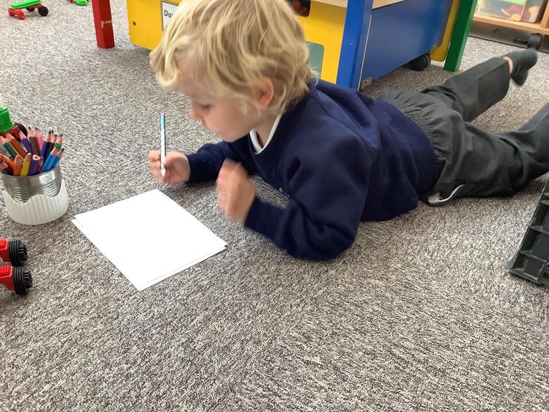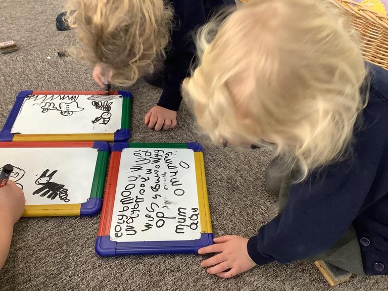 Mark-making can be pictures, scribbles, shapes or writing. We encourage all children to see themselves and writers; to assign meaning to the marks they make, and mark-making is the beginning of this process. As children learn to write new sounds, they are encouraged to use them and some FS2 children can now choose the correct initial sound for what they want to write about. It's super to see how quickly they progress!