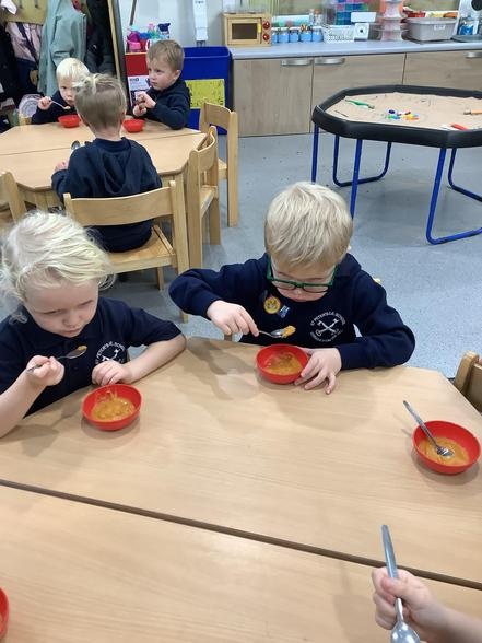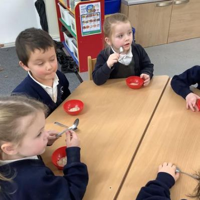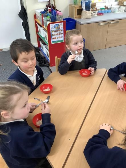 ..Everybody! After reading about Goldilocks and the 3 bears, we made some porridge. We all tried it and some of us thought it was "Just right!"