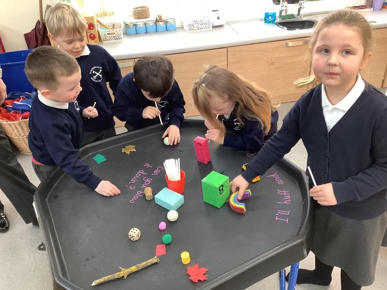 There has been some fantastic building going on this week; we have followed the example of the 3 Little Pigs and made houses out of all sorts of things! outdoor challenges are great for developing big ideas, using our gross motor skills and developing team work.