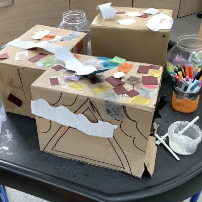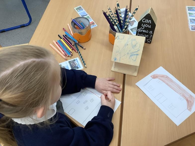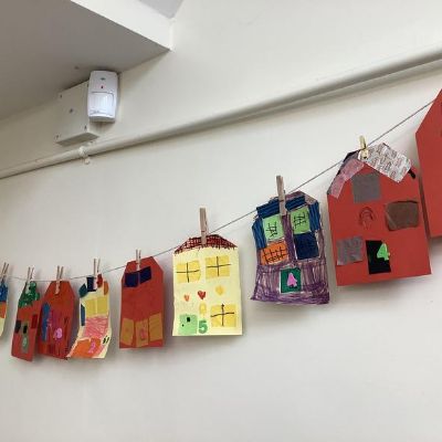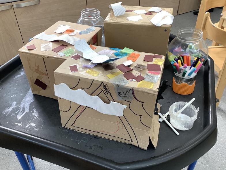 The children have been talking about their homes and families this week. We enjoyed making houses using all types of media.