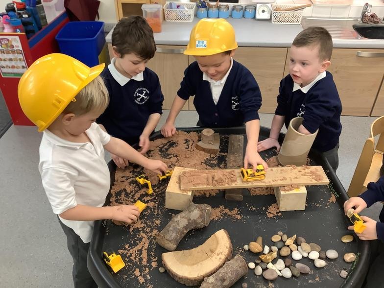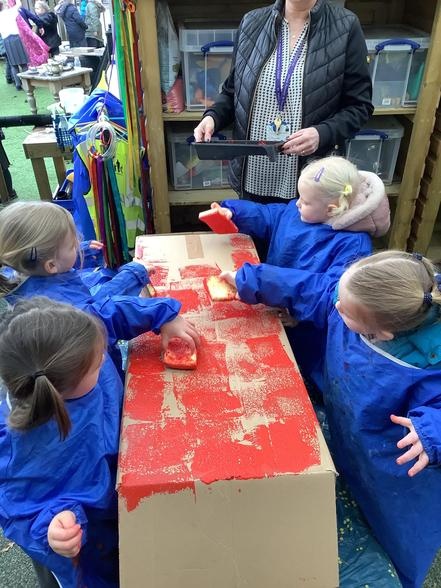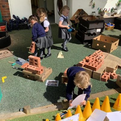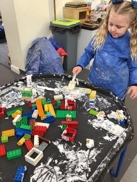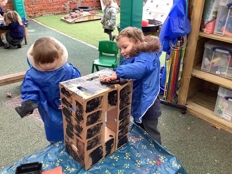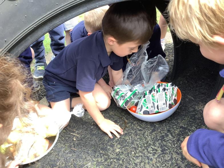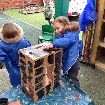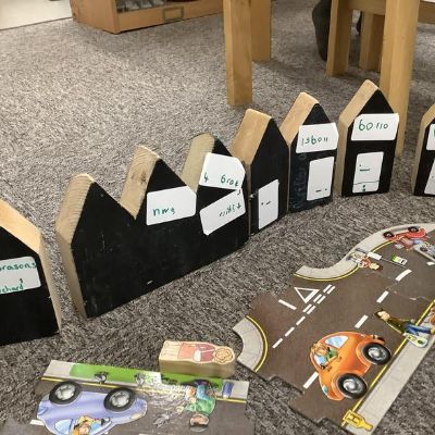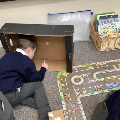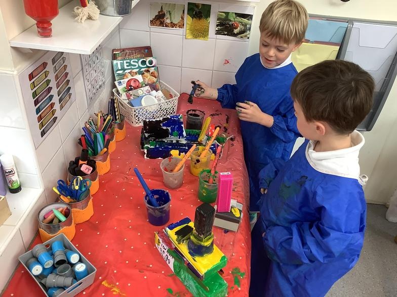 The children have had great fun building boats, trains and monster trucks outside! It is great for their physical development but also encourages team work, cooperation and some wonderful vocabulary. Inside we made a town for our cars to travel around. The children labelled the buildings and even made a fruit box car wash! Remember to ask your children what they have been learning about - they might surprise you with just how much they know and remember.