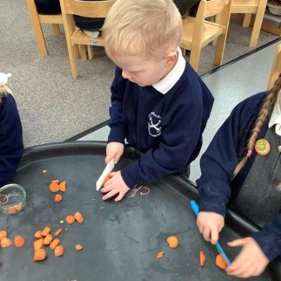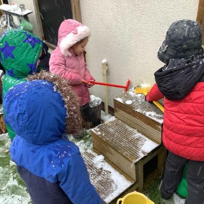 We still like to get outside as much as possible so please ensure children bring a coat that they can fasten themselves (Please practice this at home if they need it) and gloves and hats when required. This is a good time to remind you to check that everything is named please! Because we take our shoes off to come inside, wellies are not usually required.