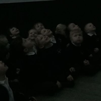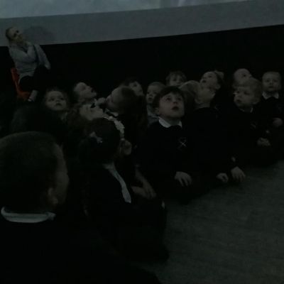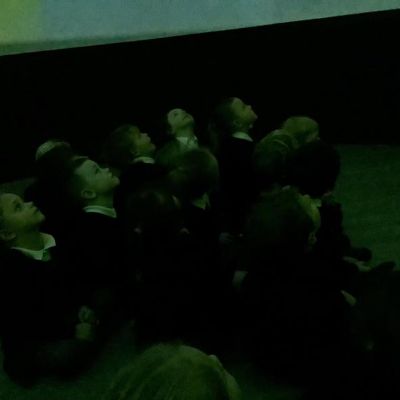 We went into the inflatable dome, which was extremely dark! and watched a short film about travelling through space and another one about the Earth when dinosaurs were around. The films were projected across the whole of the domed ceiling and, as you can see by our faces, it was super exciting!