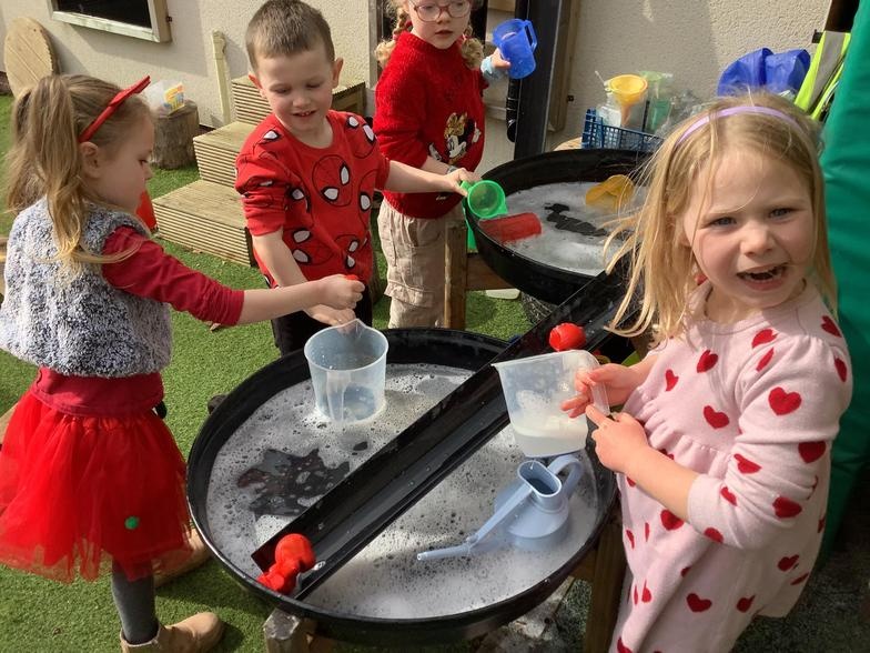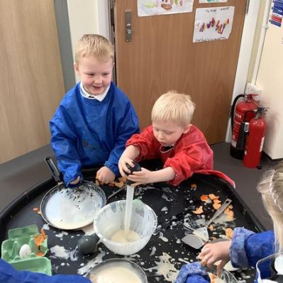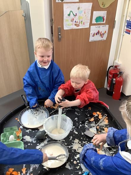 This week we have looked at butterfly life cycles, we have a new desk to write on which has been very popular! we have enjoyed playing outside in the sunshine and recapped pancake day with some messy play!