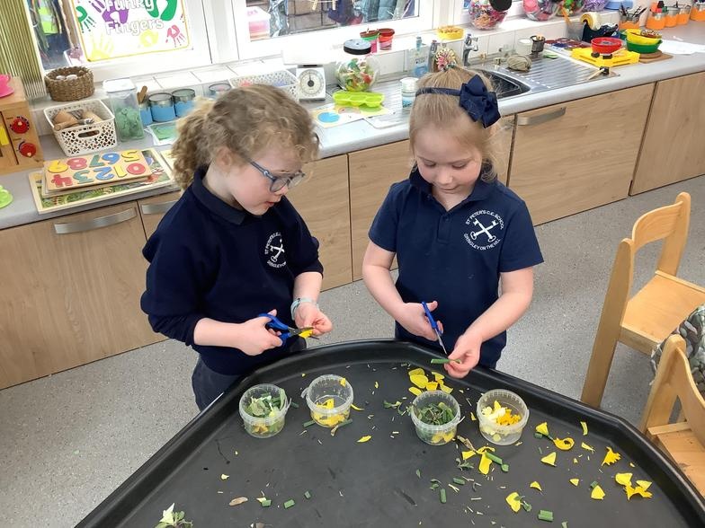 Being able to use scissors carefully and safely is a really important skill. We start in the FSU by having scissors freely available for all types of activities. We allow children to explore by snipping away at different materials and different textures. We teach the correct way to hold scissors and how to move the paper when cutting out shapes. If you haven't got any children's scissors at home it's worth getting some and letting your child practise their skills.