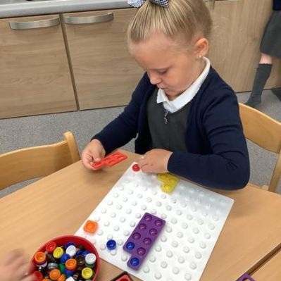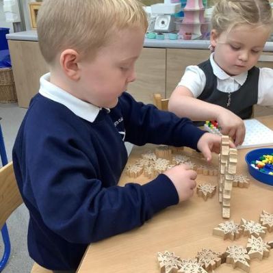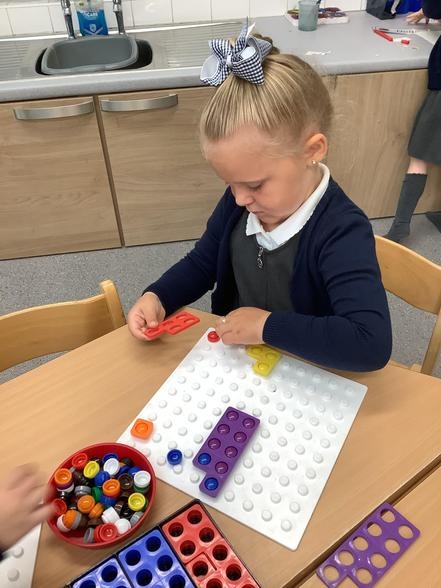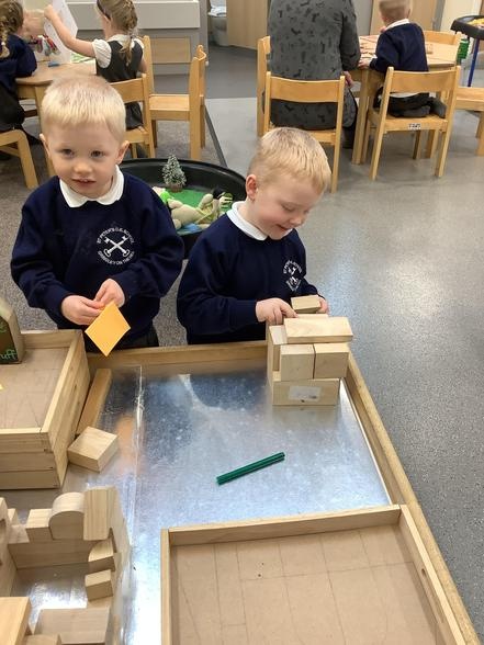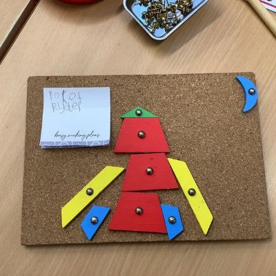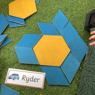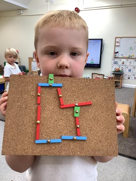 In them we might read a story, sing some number rhymes, do some counting or sorting, look at a "maths talk" picture or explore shape and measure. This week they were looking at different shapes and how they might fit together. All of our activities are explorative; it's the best way for our youngest children to learn and it promotes lots of lovely mathematical vocabulary.