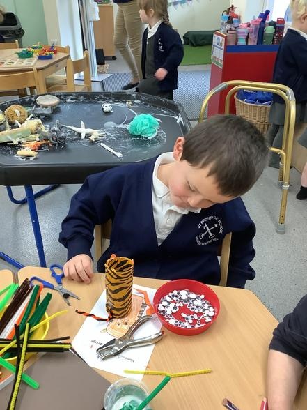 We have designed and made 3D animals using tubes - they turned out fantastically! We have made animal masks, bought toys in the "Zoo shop", washed the muddy animals and enjoyed small world animal play inside and outside.