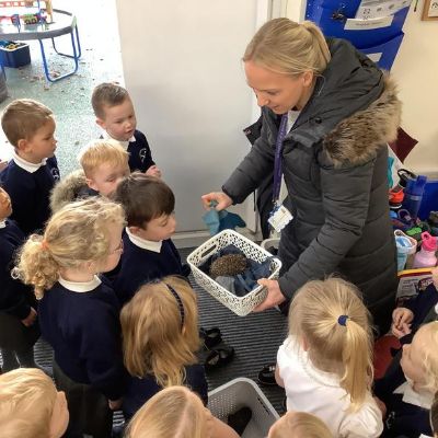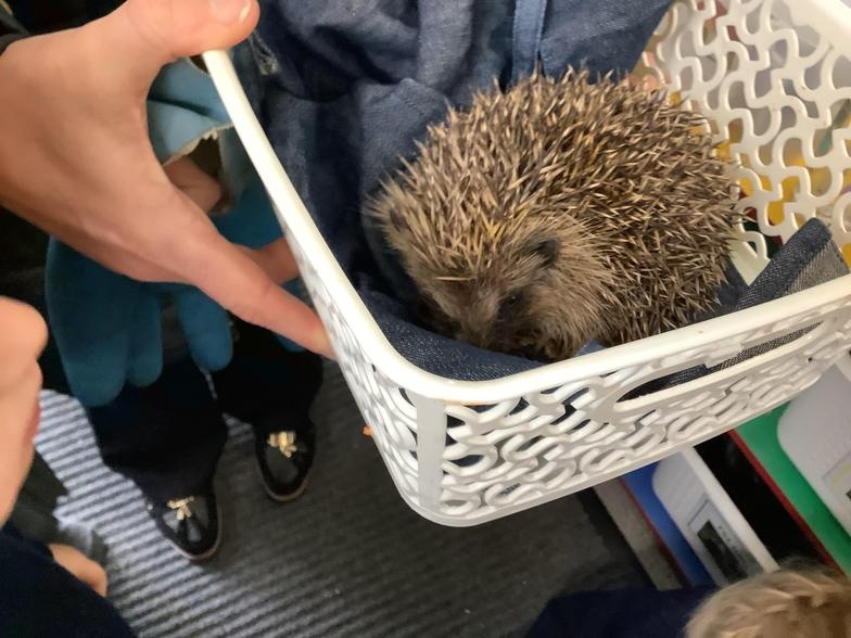 Miss Brason found a hedgehog in our FSU garden last week.