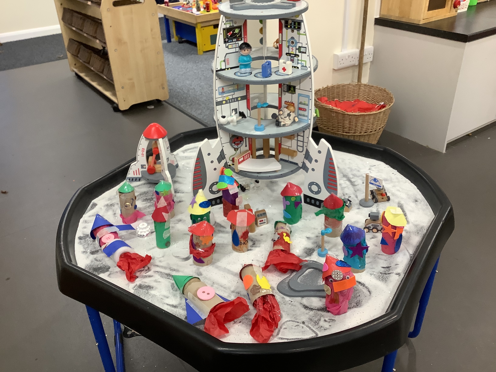 This week, we have been learning about space travel. We have had a lot of fun playing with the small world space toys, and we built our own space rockets too!