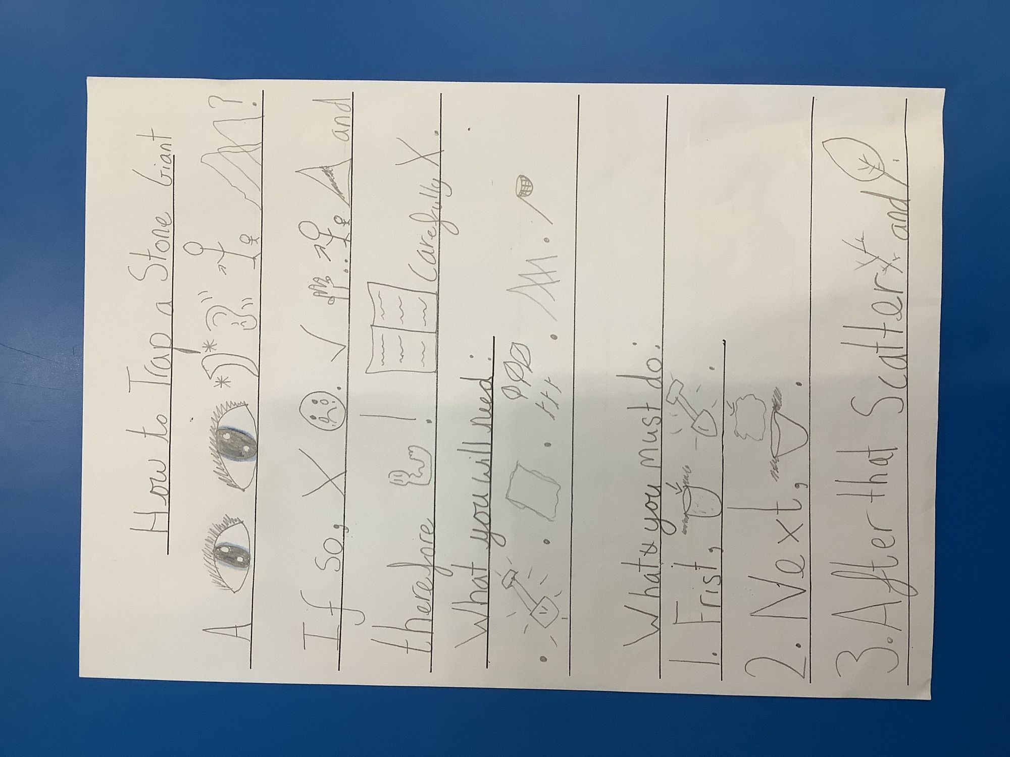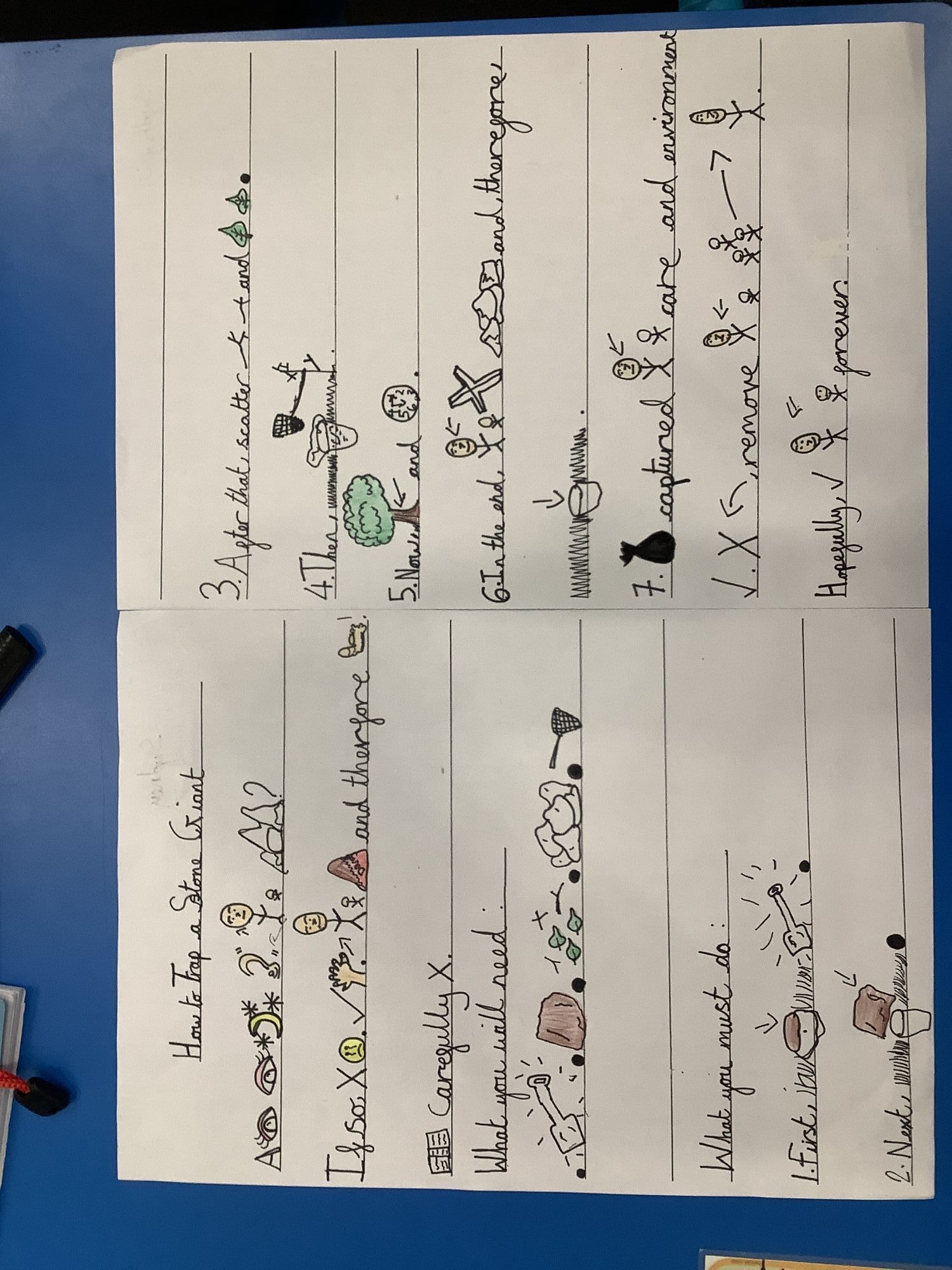 In English this term, Class 2 are learning to write their own instructions. This week we have focussed on creating a text map for our class instructions - 'How to Trap a Stone Giant'. The children then created their own actions to help them remember the text.