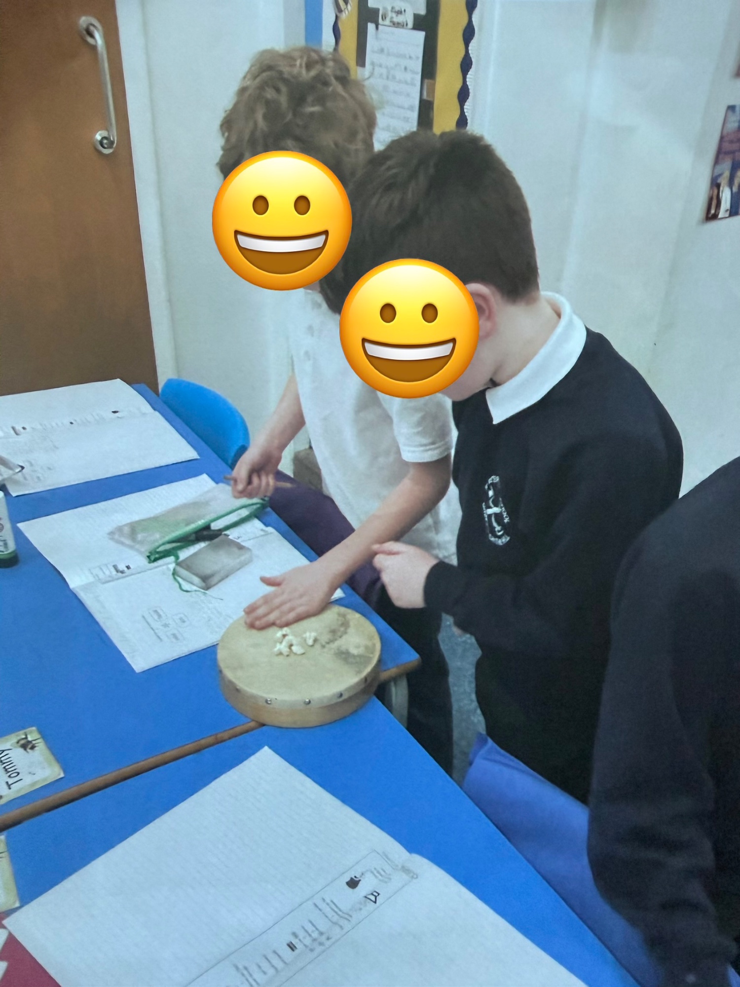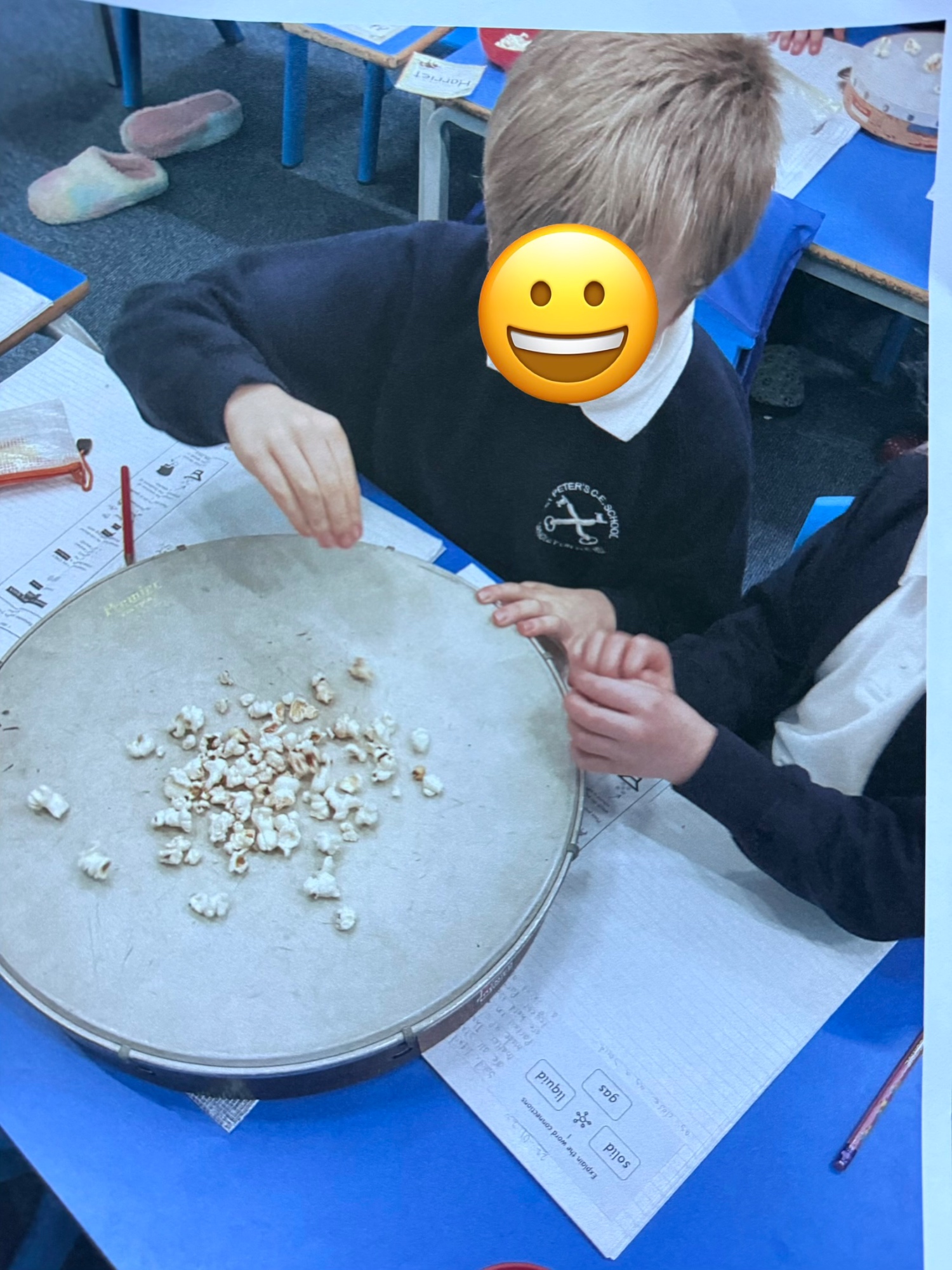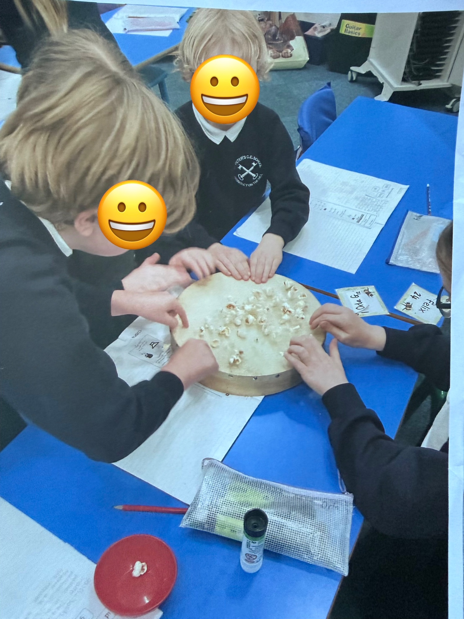 In Science, we have been exploring sound. We know that sound waves travel through the three states of matter — ask us what they are! We also discovered that sound travels as vibrations in waves. We had great fun experimenting with popcorn and drums to deepen our understanding.
