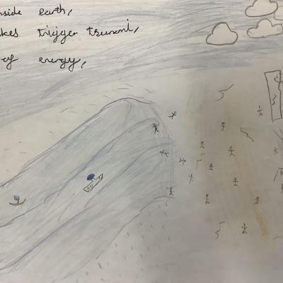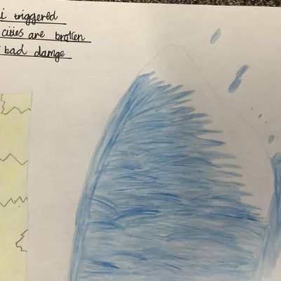 We loved the book, and we spent time writing different genres: a diary, a newspaper report, a description of the rough sea and writing from the perspective of the sea.