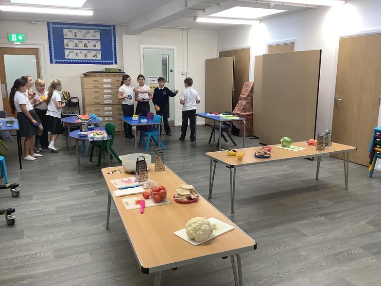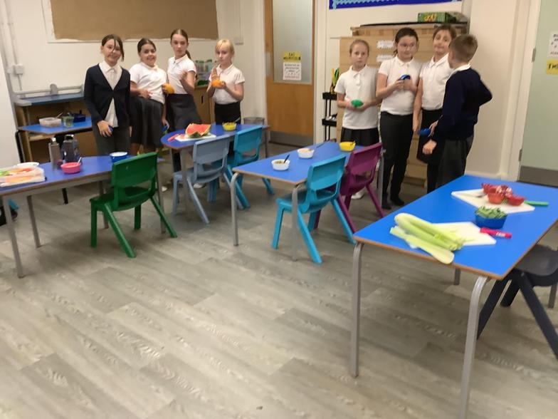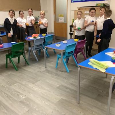 In design and technology, we are studying street foods from different cultures. We are using this knowledge to consider our own diet and snacks. We are thinking about how these may be improved. We are learning skills such as finely dicing vegetables using a claw grip, folding and shaping a tortilla, grating and ribboning. Today, we made burritos. When we evaluated them most of the class enjoyed them, but there were things we would do differently like using less